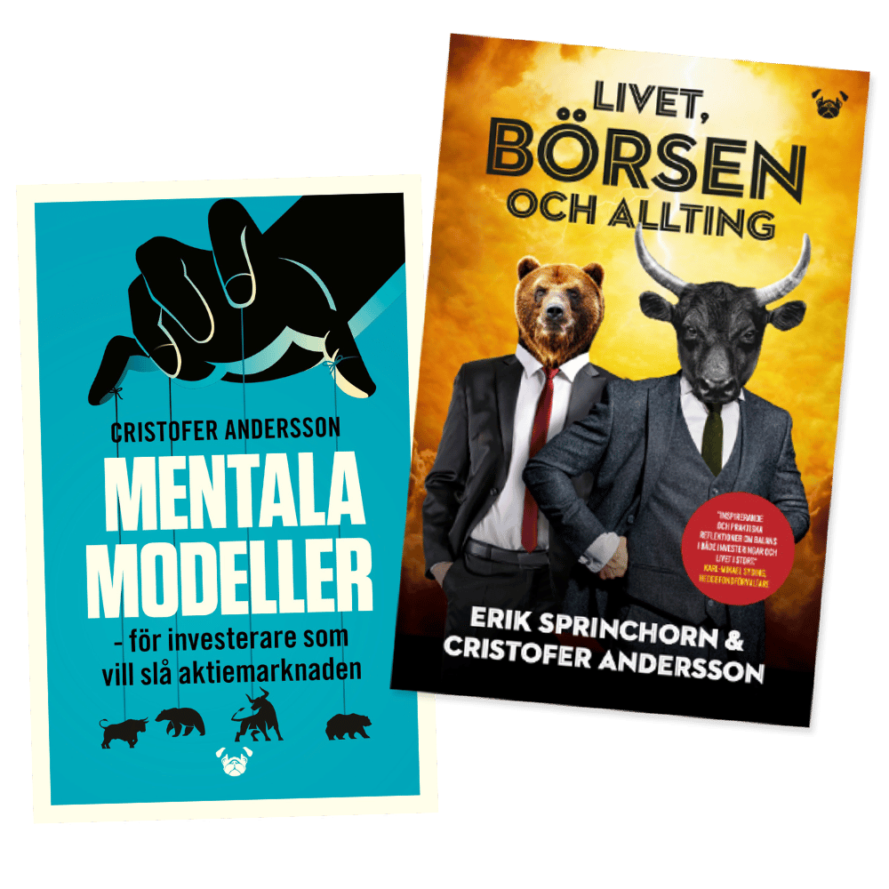 Livet, börsen och allting – en medveten pastisch på Douglas Adams Livet, universum och allting – är en bok riktad mot investerare och som tar sig an det stora, breda perspektivet. Den mångårige investeraren och fondförvaltaren Erik Sprinchorn och privatinvesteraren Cristofer Andersson tar sig här an ett grandiost projekt att presentera mentala tankemodeller och utgångspunkter som både investerare och privatpersoner kan dra nytta av. Via besök i såväl antikens värld som hos Candide och Kafka guidar de oss genom frågeställningar och perspektiv som sällan lyfts in i aktiesfären.
