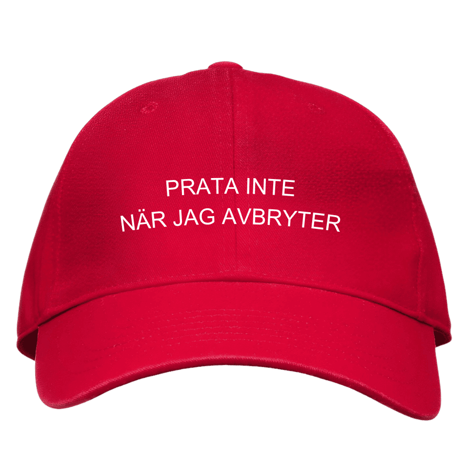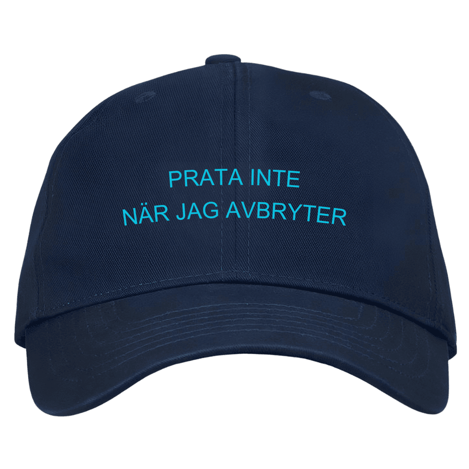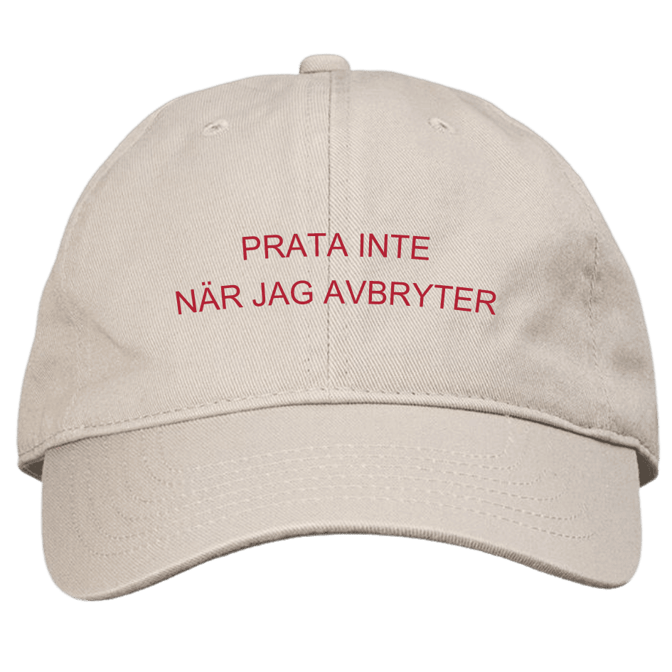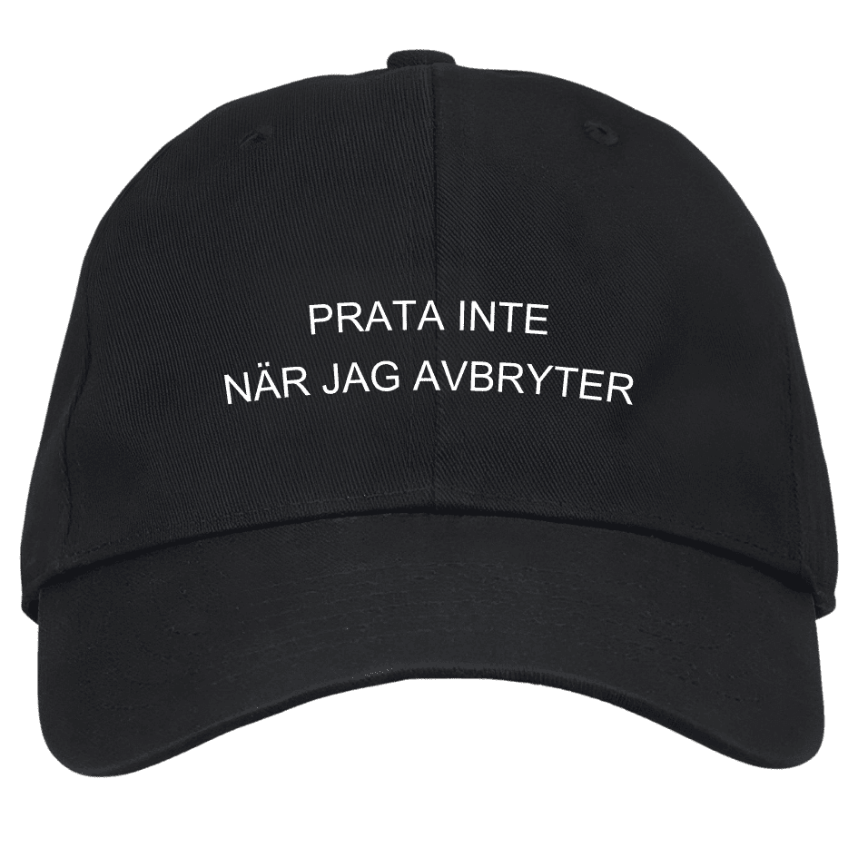Prata inte när jag avbryter! Viktigt budskap på en så kallad dad cap.