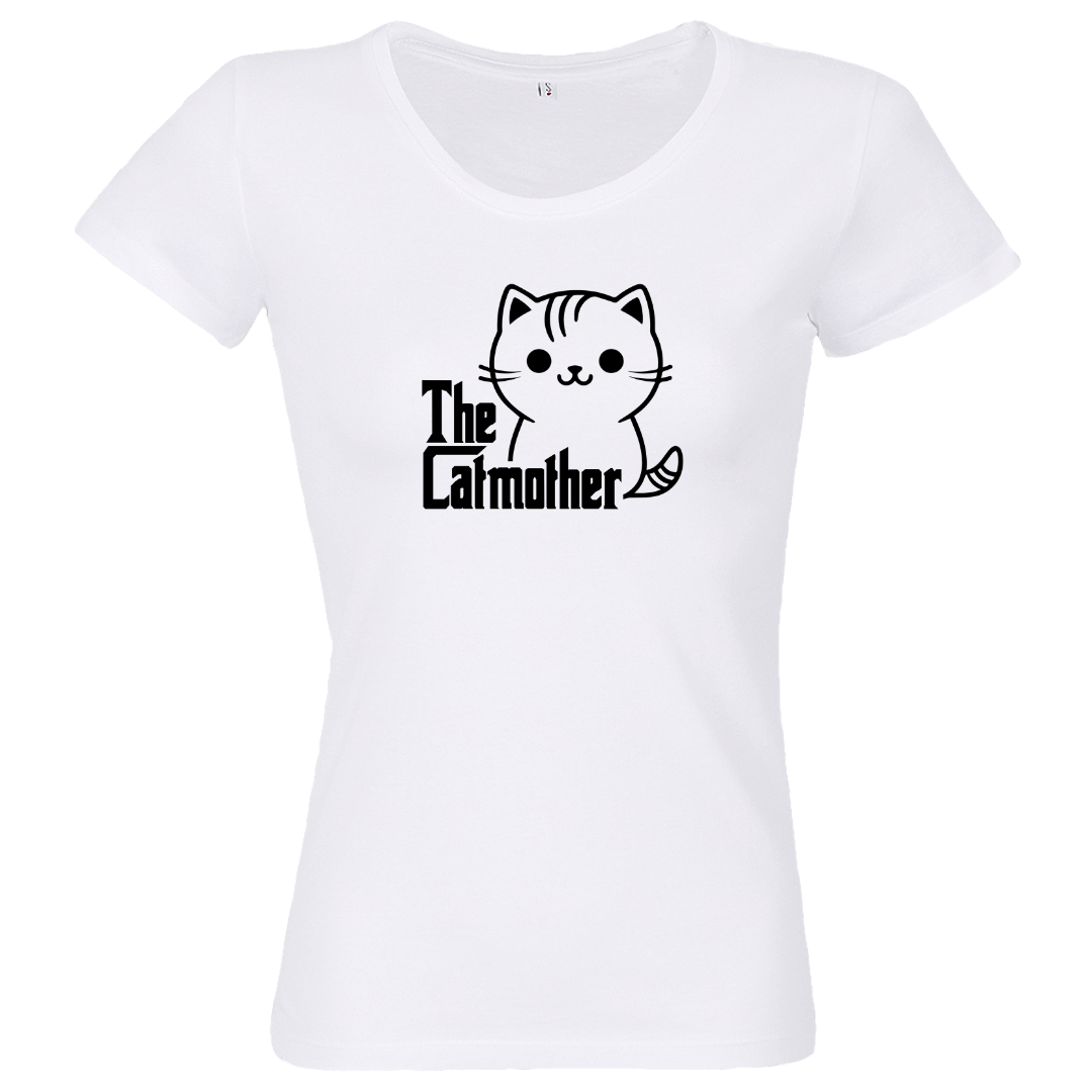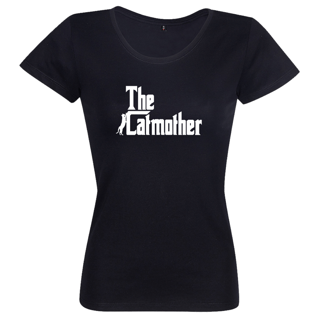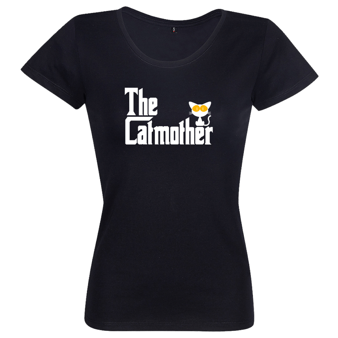 Beskrivning: Dammodell. Rundad hals, kort ärm och tryck framtill.